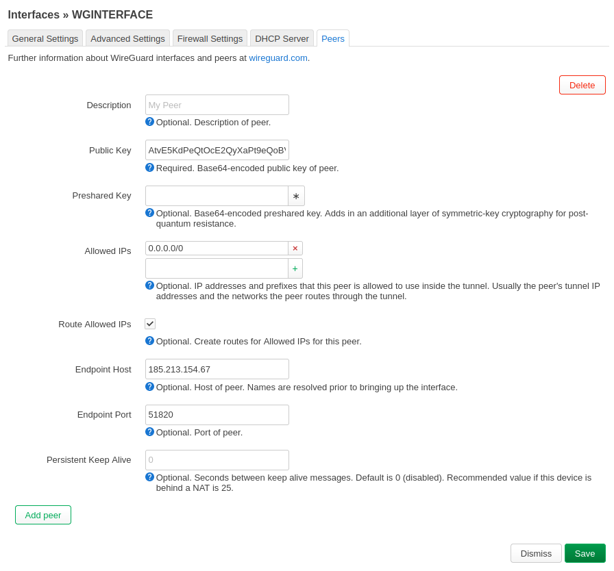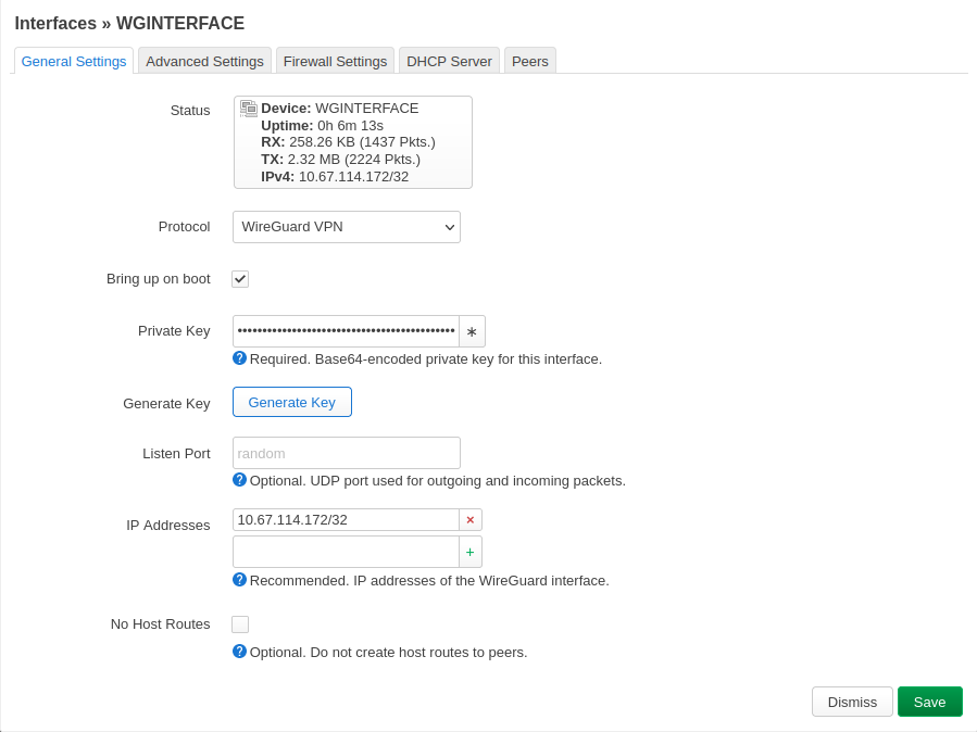 Configure WGInterface settings